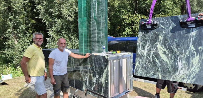 Die Skulptur “Mutter Erde” wurde vom Osttiroler Künstler Georg Planer entworfen, der auch bereits das Portal am Felbertauerntunnel gestaltet hat. Für die technische Umsetzung zeichnete die Glas- und Metallwerkstatt GEMOS verantwortlich.