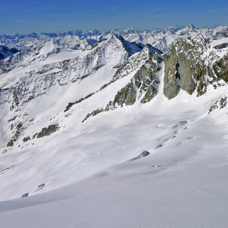 Nicht nur wegen der fantastischen Aussicht auf die zum Greifen nahen Dolomiten mit den „Drei Zinnen“ ist dieser Gipfel besonders lohnend, auch die Ausblicke in die Lienzere Dolomiten oder den Alpenhauptkamm machen ihn zum Hochbelvedere der Villgrater Sktourenberge. Die etwas steilere Abfahrt über den Grat ist bei ausreichender Schneelage sehr ansprechend. Das Pfannhorn bekommt auch von Südtiroler Seite (Toblach) häufig Besuch. Einkehrmöglichkeit nach der Tour ist die Badl-Alm.