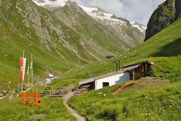 Ausgangspunkt dieser schönen Wanderung ist der Parkplatz Ströden. Zuerst spaziert man über einen breiten Fahrweg bis zur Islitzeralm, wo rechts davon ein Wandersteig neben den Umballfällen startet. Dann folgt man dem Steig, der mit einigen Stufen ausgeprägt ist, bis man zu einer großen Wiese gelangt. Dort zweigt sich der Weg und wir wandern auf dem linken Weg weiter bis zur Clarahütte hinauf. Dort kann man auf der Sonnenterrasse oberhalb des Gletscherbaches eine Jause oder Kaffee und Kuchen mit einem atemberaubenden Ausblick auf die Rötspitze genießen.