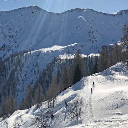 Von der Haltestelle des Skibusses beim Lackenstüberl startet die Schneeschuhtour zum Wetterkreuz oberhalb des Obersees. Weiter geht es bis an die Grenze zu Südtirol mit einem wunderbaren Blick auf den Antholzersee – entlang der Grenze weiter zum Heimkehrerkreuz und dann zur Oberseehütte – die zur Einkehr einlädt. Nach einer kleinen Stärkung geht es am Westufer des Sees zurück zum Ausgangspunkt.