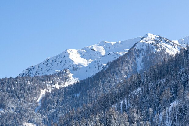 Starting point for this very popular and really short ski tour on the Carnic ridge is the little parish of Rauchenbach (1515 m), around three kilometres after Kartitsch. Opposite Gasthaus Klammerwirt (bus stop, car parking) we initially follow a forest trail which takes us to the shaded side, into steep forest terrain beneath the Öfenspitze. The ski track stays mostly on the signposted summer trail and quickly gains altitude, crossing the forest road on several occasions. At 1900 m the terrain becomes more open and the view to our destination opens up. Via a steeper trough, which we walk to the right of, we get to a ridge, which we use, when there is no threat of avalanche, as a further ascent. Crossing an enclosed basin again, after a short slope section we again reach an impressive ridge beneath the steep summit flanks. There are several options here for the final section. Depending on the conditions follow the track, either steep in several hairpin bends to the north-east ridge, which is often topped with lovely cornices, or cross the aforementioned ridge into the trough to get below the steep flanks past the highest point from the south. Descent, depending on the conditions, along the ascent track, or along the forest trail back to your car.