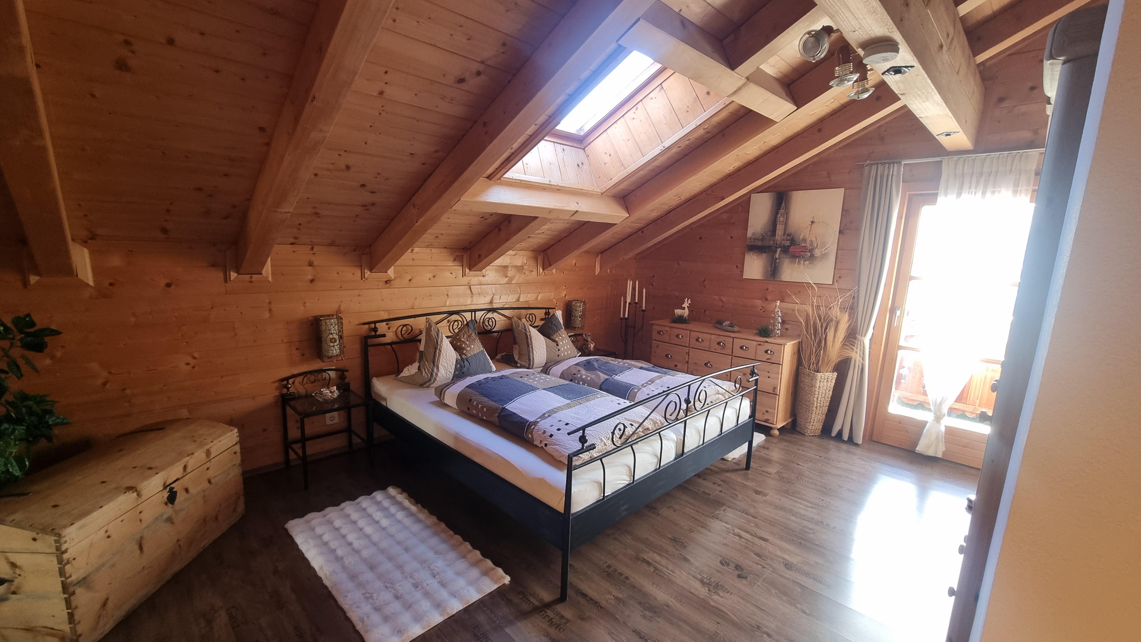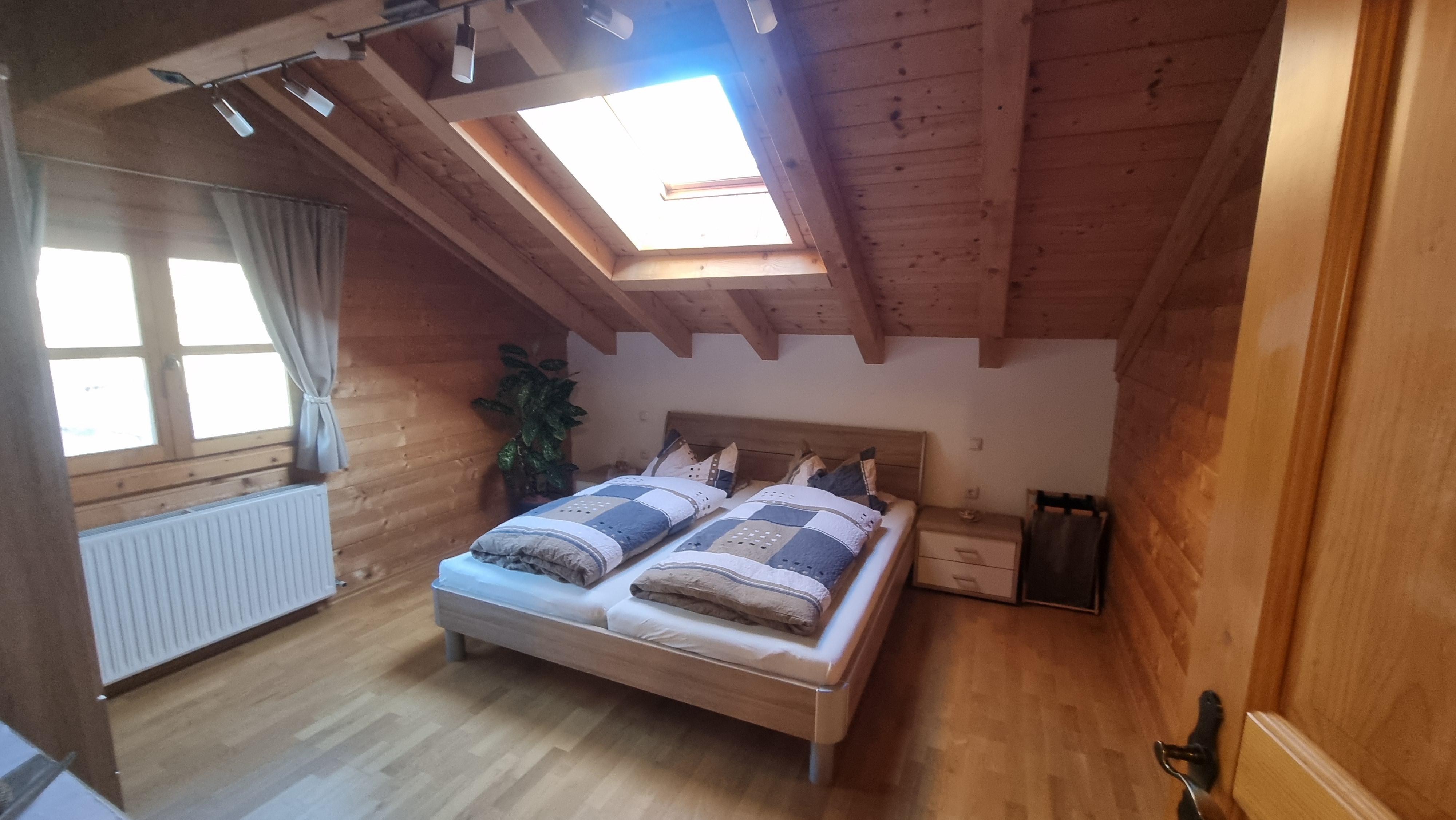 2nd floor: 2 bedrooms with double beds and access to the south-facing balcony, 1 bedroom with double bed on the north side, large bathroom with toilet/washer/dryer/shower/bathtub
