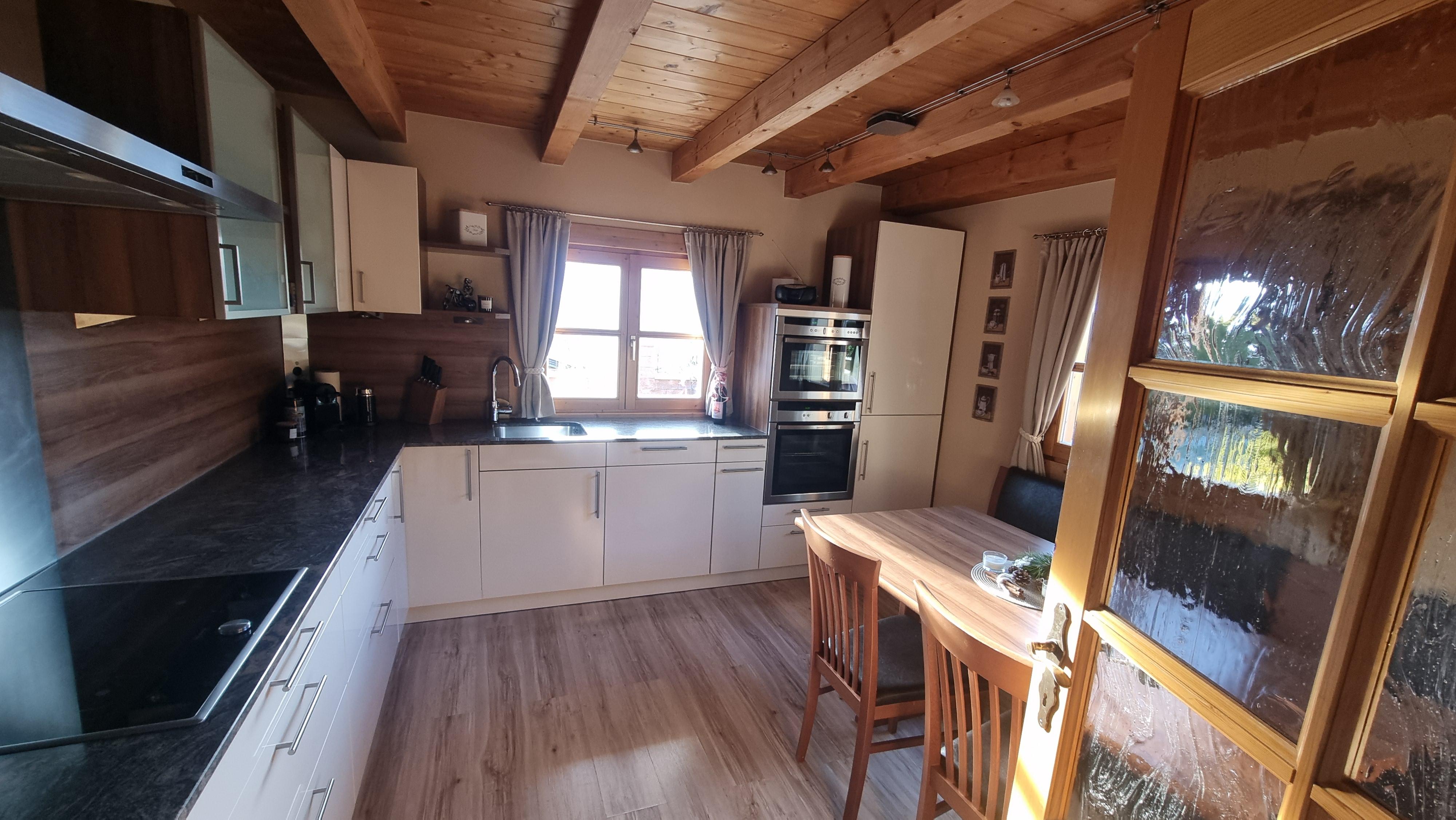 (Electricity / open fireplace / tiled stove / additional wood-burning stove in the kitchen / steam cooker / electric stove / induction hob / washing machine / dryer / coffee filter or Nesspresso capsule machine, espresso maker,