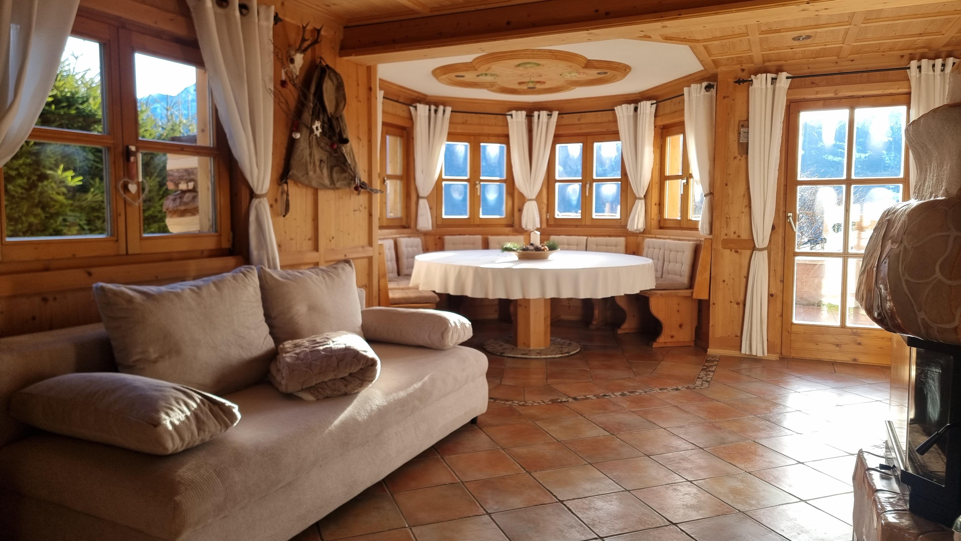 The log cabin is located on the south side (altitude 1115 m above sea level) with a direct panoramic view of the Lienz Dolomites.