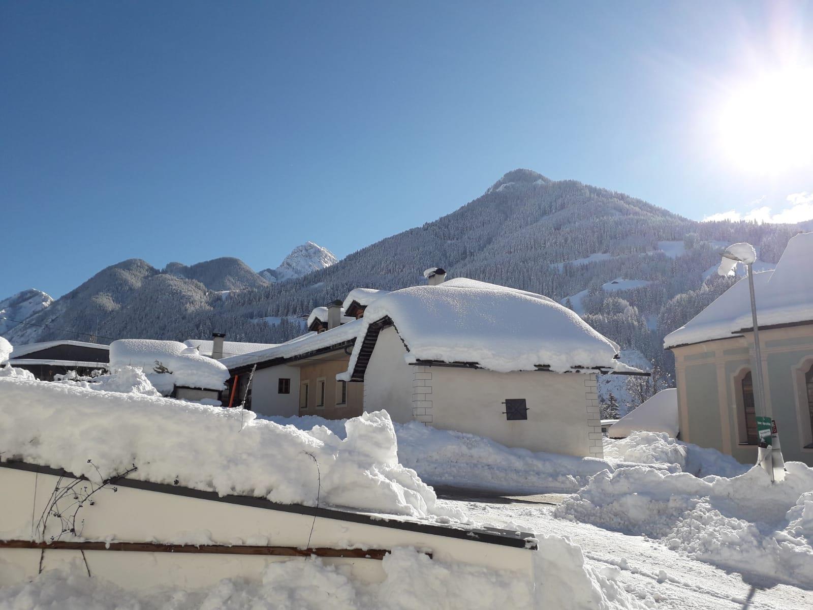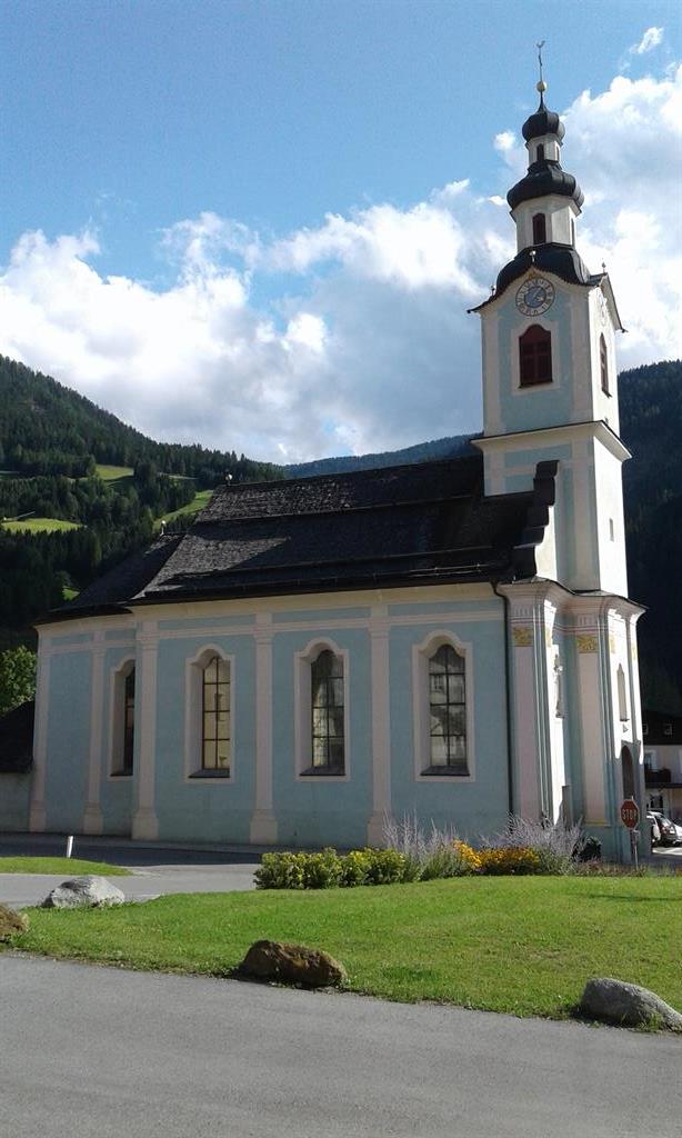 Our apartment is located in the center of Abfaltersbach, overlooking the village church and the surrounding mountains.