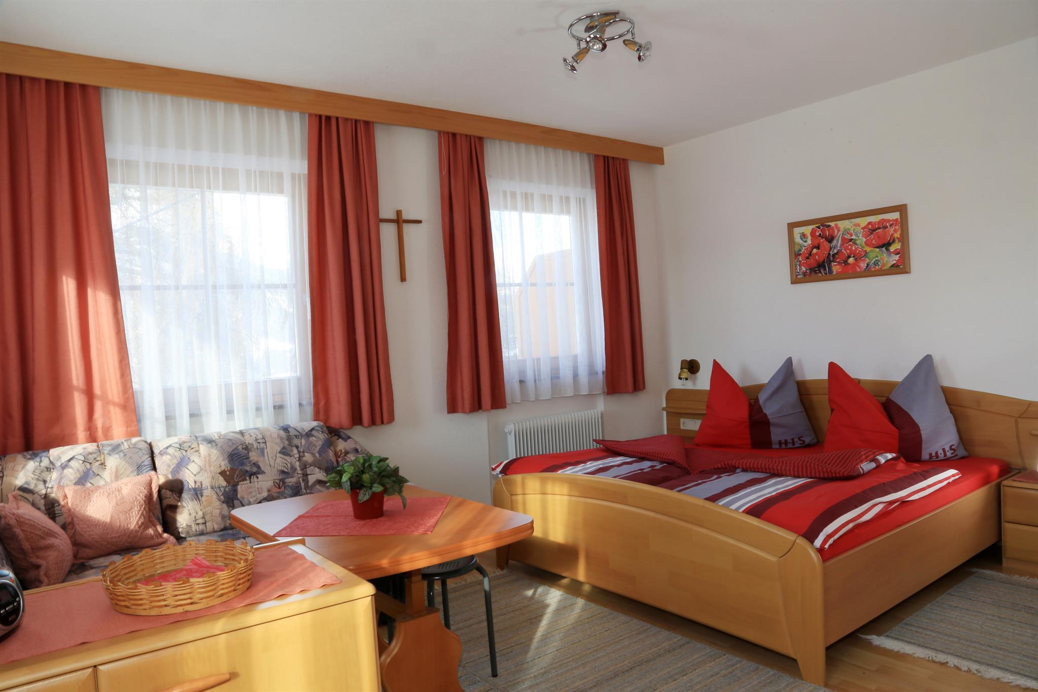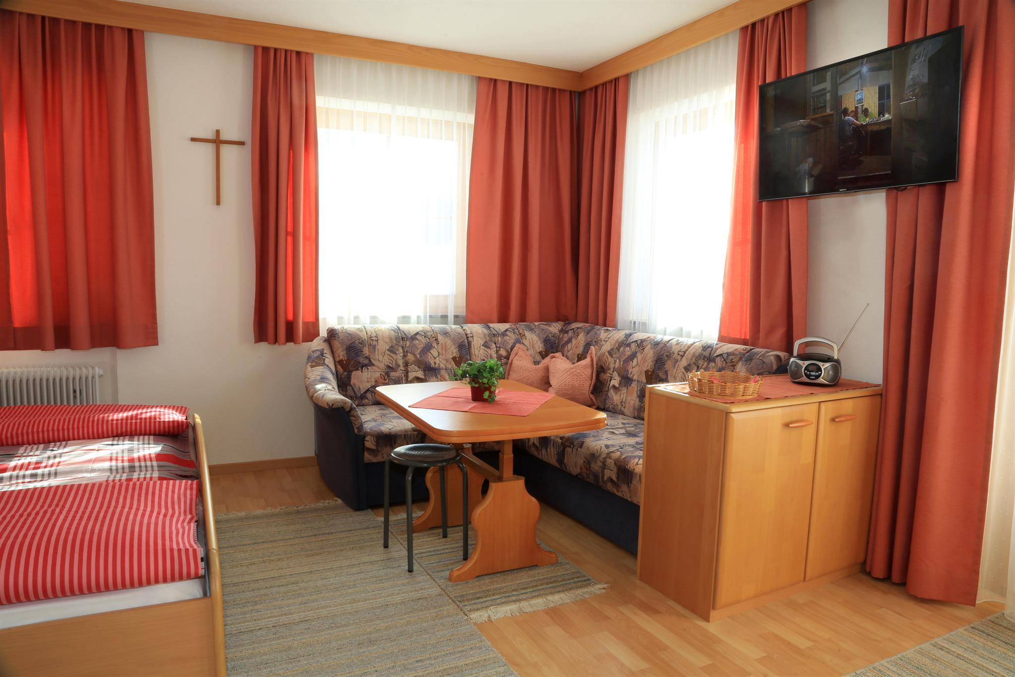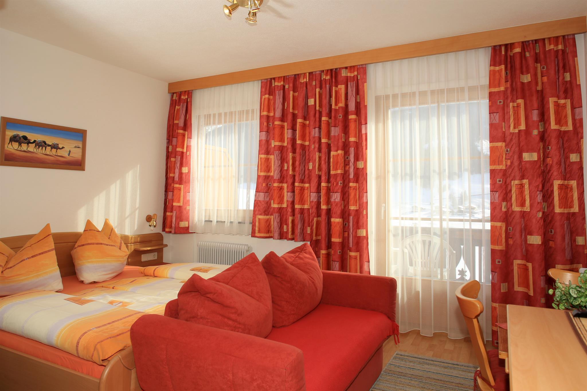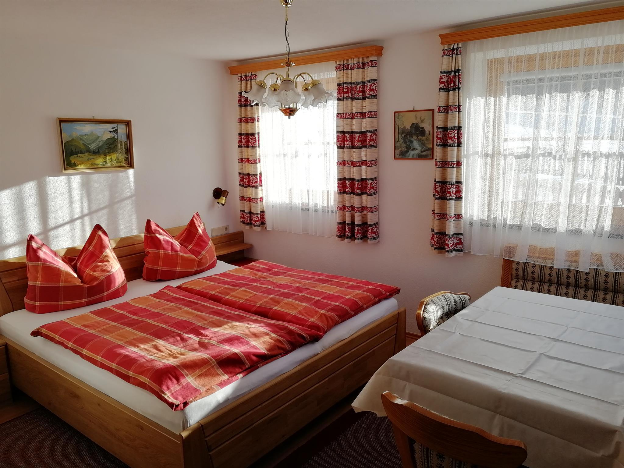 Family-run business in sunny, peaceful location. Superb comfort, rated 4 edelweiss, fabulous panorama; 5 min. on foot to ski lift; ideal base for hiking and climbing. Extra rooms with B & B bookable.