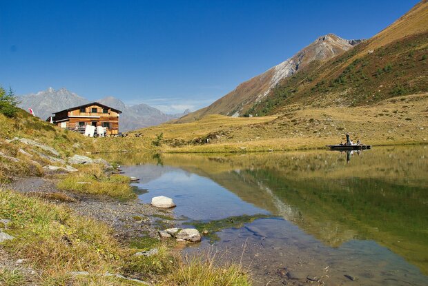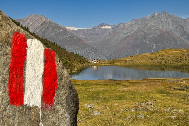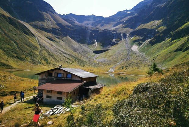 The ascent is from the parking place "Freizeitzentrum Gries" through the valley Zopatnitzental and takes about 2.5 hours. The hiking trip first begins on an ashpalt road and continues later on a footpath, which mostly leads through the forest. Above the forest border, you cross a bridge on the left side, hike through a slope in serpentines and cross a bridge again below the waterfall. Then follow the markings up to the hut Bergersee Hütte (2.181) and the idyllic mountain like Berger See.