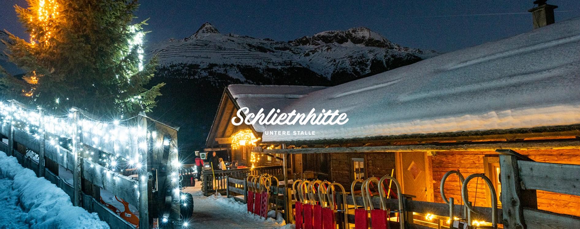 The rustic Schlitenhütte is located at an altitude of 1,714 m at the end of the toboggan run at the traffic light station (junction) and is open in winter. Here you can expect an evening full of enjoyment, fun, and hospitality – with many hearty dishes and relaxed music.