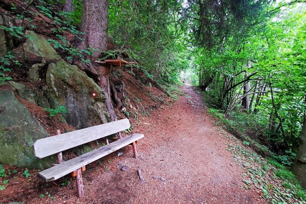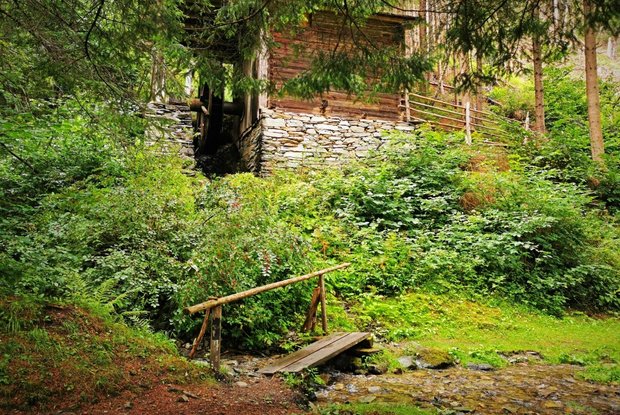 The starting point for this walk is the parking place Europastraße at the valley station of the cable cars Matreier Goldried Bergbahnen. From there, first turn left past in direction center of Matrei in Osttirol. After the supermarket Spar, turn right onto the street Lienzer Straße and follow it to the former church Spitalkirche, which is also called chapel Josefskapelle. The interior of the church on the 1st floor can be reached via an outside staircase. The marble relief of the dying St. Joseph was created by the local artist Virgil Rainer. At the height of this sight, a path leads up to the right between houses no. 11 and no. 13. Then turn right onto the streets Dekan-Unterpranger-Weg and Lienzer Straße. In front of the building Lienzer Straße 17b, turn left up the path and go through the subway to reach the street Hildenweg. At the next junction, take the upper path and follow its course to house no. 28. Then a path leads through the forest past the small stream Mühlbach and the mill Trattner Mühle. Do not deviate from the path until you reach its end (at about the level of the bridge at the street Felbertauernstraße in the district Seblas). Then turn around. Initially, take the same path back. As soon as you reach the asphalt road, stay on it for a while. At the next junction (house Seblas no. 4), continue to the right. Follow the asphalt road without turning off. Before you reach the main road, the Felbertauernstraße, take the footpath to the right along the road. Finally, go through the subway, past the valley station of the cable cars Matreier Goldried Bergbahnen and the grocery store M-Preis. Now you have arrived the starting point.