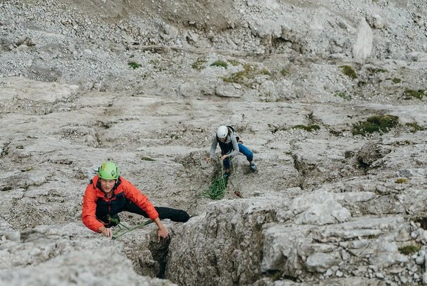 Eine Kombination von 2 alten Routen, abwechslungsreiche und luftige Kletterei, die nach dem Einbohren der Standplätze und relativ vieler Zwischenhaken immer öfters begangen wird.
