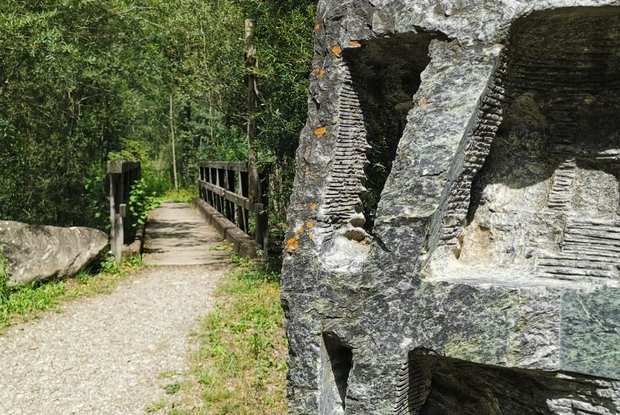 Gemütlicher Spazierweg an der Isel bis zum "Falter See". Führt vorbei an Skulpturen internationaler Künstler aus Serpentin, die bei einem Bildhauersymposium im Sommer 1992 entstanden sind.