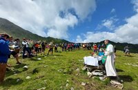 Um 12.00 Uhr feiern wir die Bergandacht oberhalb des Zupalsees, musikalisch umrahmt von den teilnehmenden Weisenbläsern und Sängern.