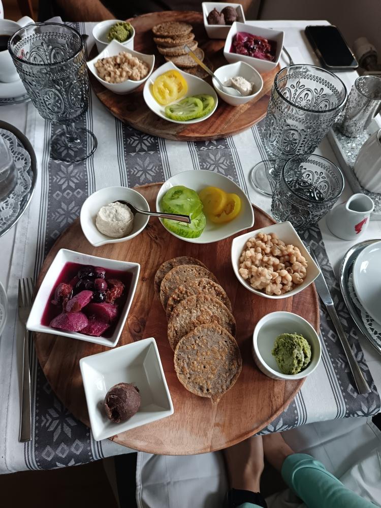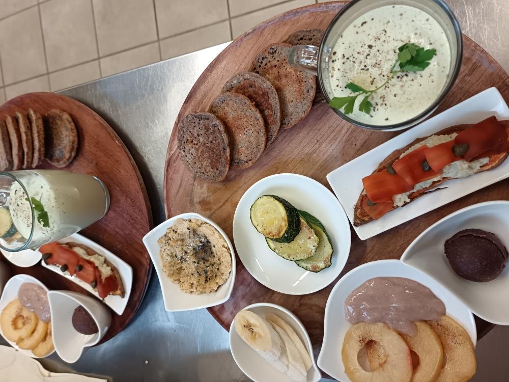 Im Restaurant werden Sie mit einem köstlichen Brunch, Suppen, Tortenkreationen, handgemachten veganen, glutenfreien TCM Menüs und Speisen, die ohne Tiefkühlware hergestellt werden, verwöhnt. Die Suppen, Jausenteller, Hauptspeisen und Desserts, Smoothies, Sirupe und Liköre werden auch mit Produkten des hauseigenen Gartens zubereitet.