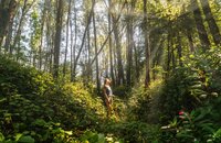Esplorare consapevolmente l'ambiente con una mente vigile e immergersi nella foresta. Utilizzare tutti i sensi per assorbire le forze curative del bosco.