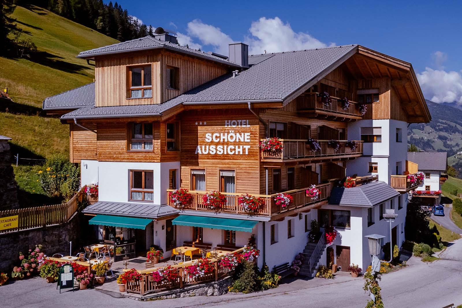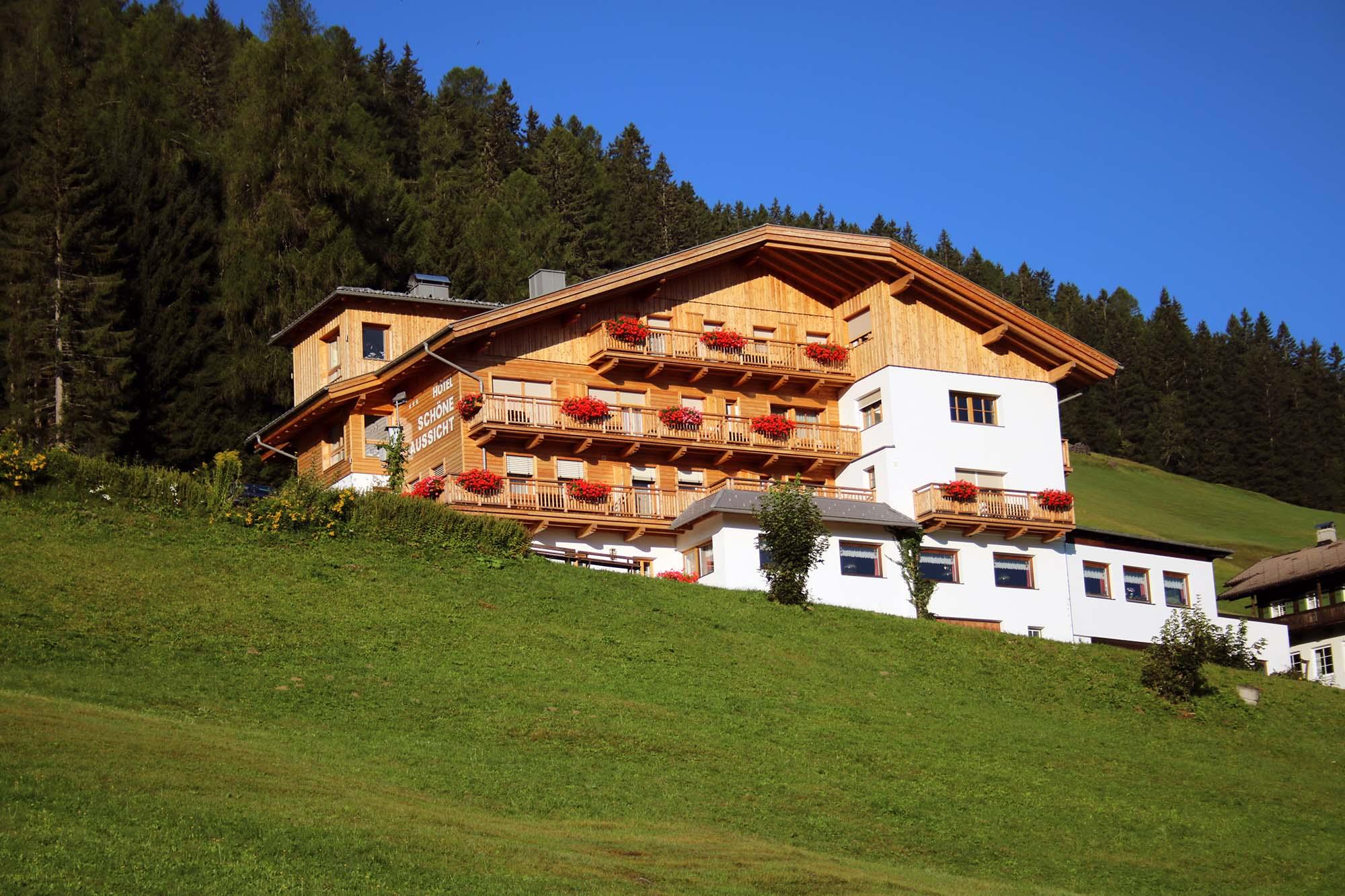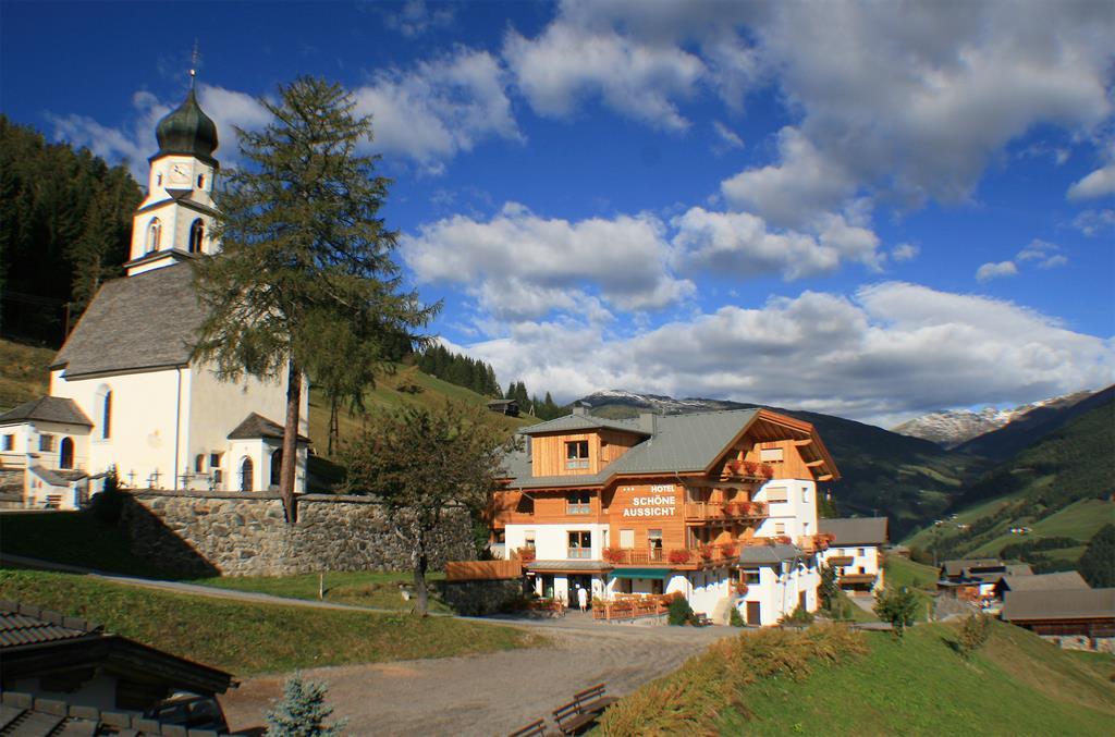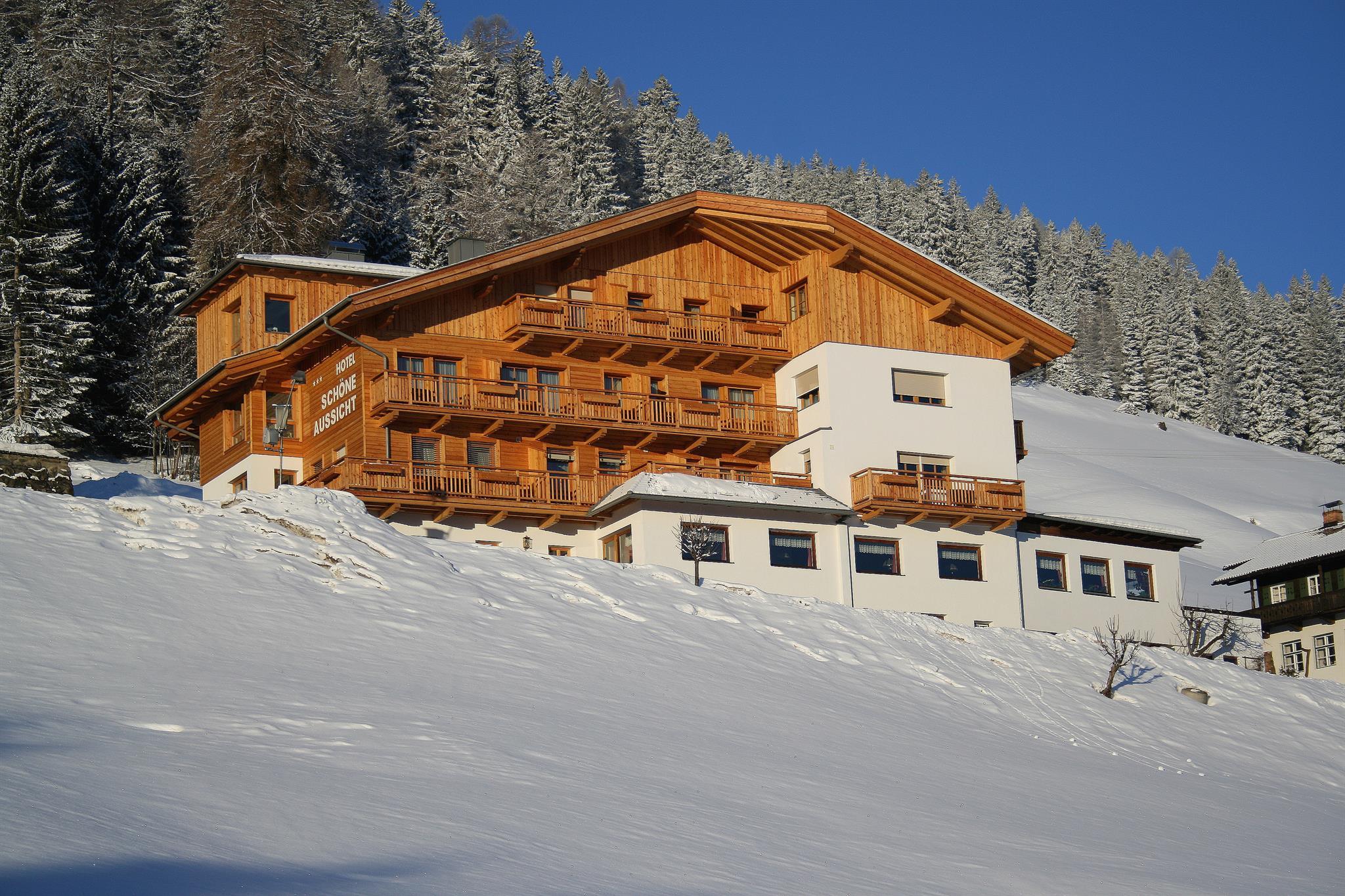 L'HOTEL SCHÖNE AUSSICHT - azienda famigliare con comfort tre stelle superiore; cucina degna di nota, molto conosciuta. Le camere nuove sono luminose con mobili di legno naturale; eleganta lobby d' entrata; moderna oasi del benessere con stube-sauna, bagno turco alle erbe e sala relax; ascensore, accesso nternet. A presto, ci vediamo...