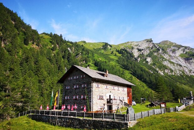 Dal rifugio Sudetendeutschen Hütte si raggiunge la croce commemorativa e si passa di fianco al vicino laghetto di montagna attraverso dorsali erbose e conche coperte di muschio si risale fino al bacino di ablazione del ghiacciaio Gradötzkees, dove si è formato anche un laghetto e il paesaggio è caratterizzato da imponenti morene. Infine si raggiunge la sella Gradötzsattel (2.826 metri), poi si scende incontro al cosiddetto Bloipalfen (2.684 metri). Quindi si continua scendendo attraverso un prato e fra rocce disposte in modo tale da formare una gola. A ca. 2.500 metri di altitudine il sentiero Silesiaweg svolta a sinistra. In pochi minuti di cammino ci porta alla rocciosa cima Muntanitzschneid, da cui si gode di una vista magnifica. Restando sul Sentiero dell'aquila ci si mantiene a destra, e si raggiunge il torrente Muntanitzbach che, in caso di abbondanti portate, non è facile da guadare, specialmente se non ci si vuole bagnare i piedi. Poco sopra rispetto all'area della malga Ochsenalm si attornia la dorsale del Muntanitzschneid. Qui il sentiero è ben strutturato, nella parte bassa fa una piccola curva a gomito e presenta un tratto roccioso. Successivamente si scende attraverso pendii erbosi e si costeggia verso nord un piccolo boschetto di pini cembri. Infine si giunge a un'indicazione del ponte sullo Stotzbach che si congiunge al Loamesbach. Arrivati al segnavia che si trova poco più in basso, si sceglie la discesa, ovvero 514 A, al Kalser Tauernhaus. Attraverso stretti tornanti si cammina zigzagando a valle sul sentiero Wilhelm-Ernst-Weg tra ontani, frassini e larici e si supera la piattaforma panoramica del Parco Nazionale dove una cascata dello Stotzbach si getta in profondità da un pianoro modellato da ghiacciai dell'era glaciale. Ora, attraversando il fiume Dorferbach, si arriva alla meta della tappa, l'accogliente Kalser Tauernhaus (1.755 metri). Questo rifugio si trova nella parte posteriore della Dorfertal, solo poco più in basso dal punto in cui il torrente Stotzbach s'immette nel Dorferbach.
