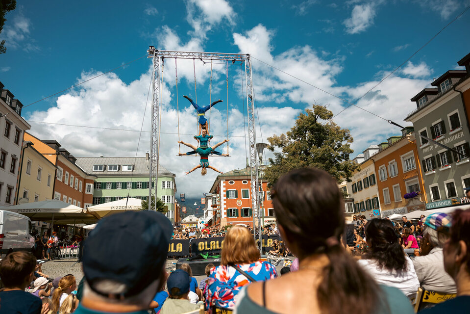 Quest'anno Olala mette di nuovo a soqquadro la città nell'ultima settimana di luglio e sorprende con produzioni che altrimenti ci si aspetterebbe di vedere nelle grandi città piuttosto che in un piccolo paese delle montagne tirolesi. Il programma è ampio, quindi i diversi gusti del pubblico e le molte sfaccettature della moderna arte di strada sono adeguatamente coperti qui. Da grandi allestimenti di piazza e installazioni al cabaret con arte, acrobazie, commedia non verbale, walk act e fanfare.