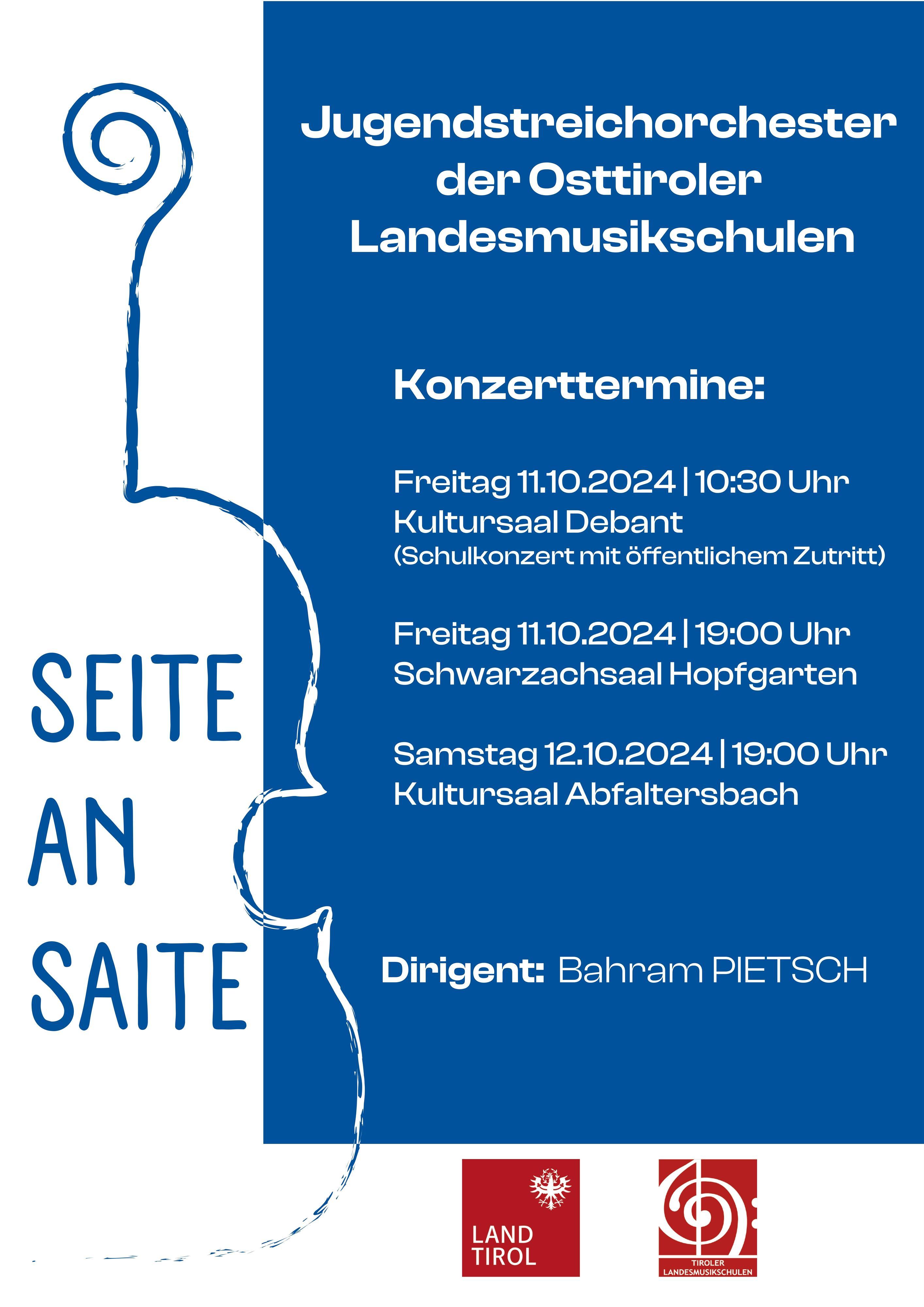 Das Jugendstreichorchester der Osttiroler Landesmusikschulen lädt zu einer Konzertreihe ein, die vom Dirigenten Dir. Bahram Pietsch geleitet wird. Die jungen Musikerinnen und Musiker präsentieren in drei Aufführungen ein abwechslungsreiches Programm, das die musikalischen Talente der Region hervorhebt.