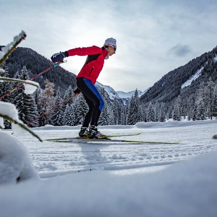 Innerhalb der Übungsloipe sind einige Spuren angelegt, perfekt für die erste Schritte auf Langlaufski.