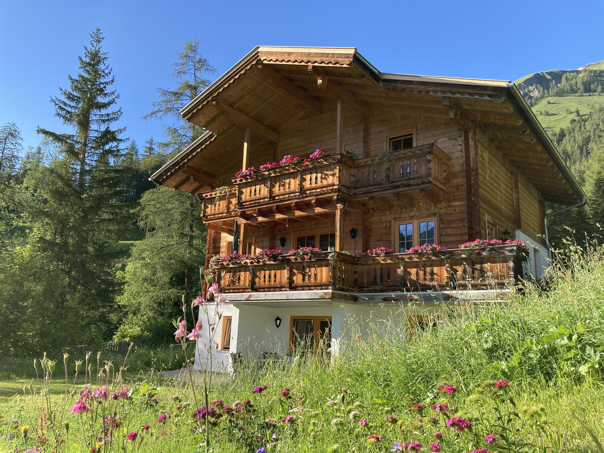 Sonnige, ruhige Waldrandlage, eigene Terrasse, vollwertige Holzeinrichtung, Kachelofen, Doppelkomfortdusche und Dampfsauna, Spülmaschine. Direkter Ausgangspunkt für Höhenwanderungen und zum Kalser Talrundweg.