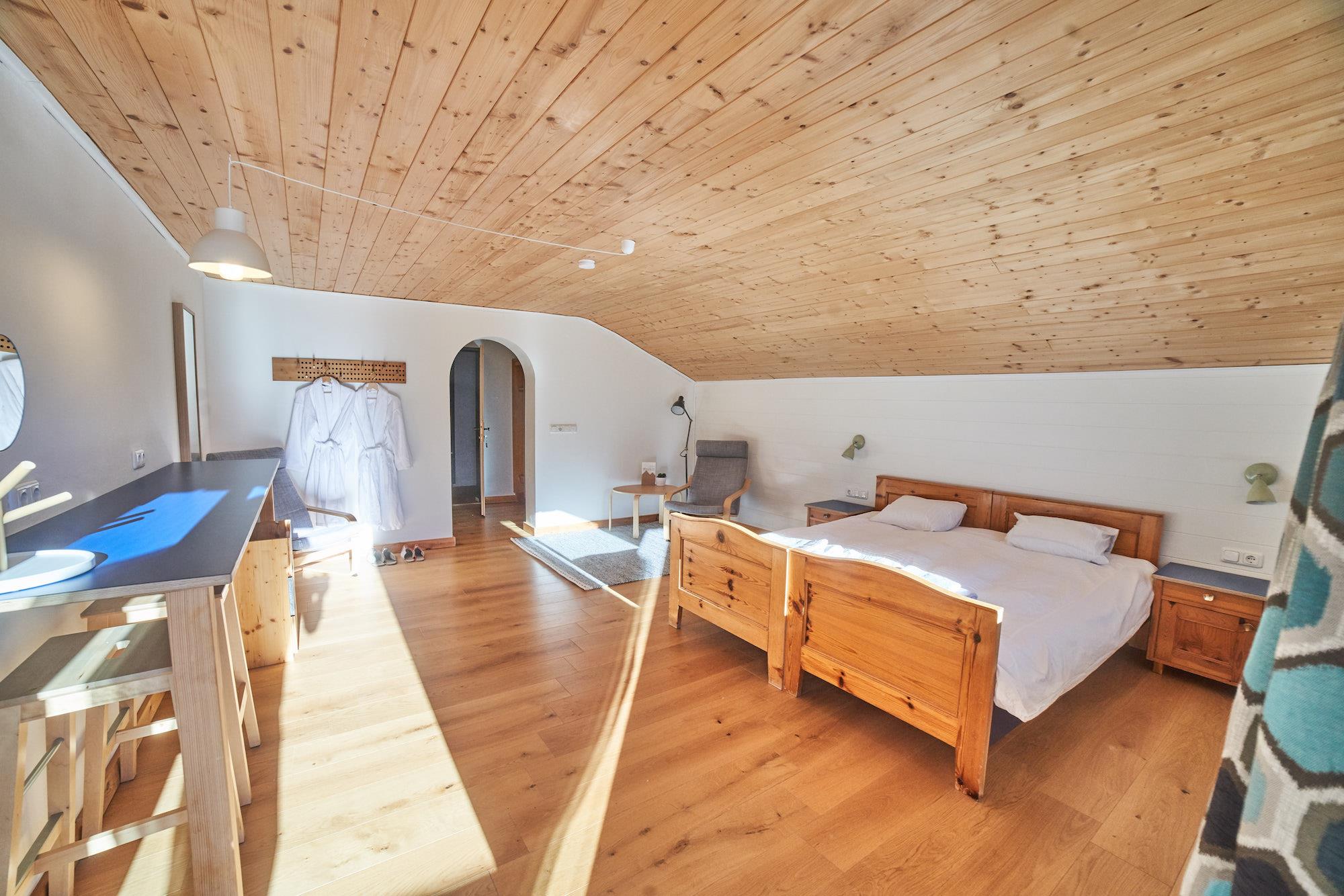 Starte deinen Tag mit einer Yogastunde im Panorama-Studio, gefolgt von einem gesunden Frühstück und einer geführten Wanderung im Nationalpark Hohe Tauern. Die Gastgeber Sophie und Tobias zeigen dir Osttirol von seiner schönsten Seite und sorgen mit ihrem Team dafür, dass sich alle rundum wohl fühlen. Nachmittags steht der holzbefeuerte Hot Tub für ein Muskelbad mit dem besten Blick auf die umliegenden Dreitausender bereit. Am langen Esstisch des stilvoll renovierten Hauses werden köstliche, vegane 3-Gänge-Menüs serviert.