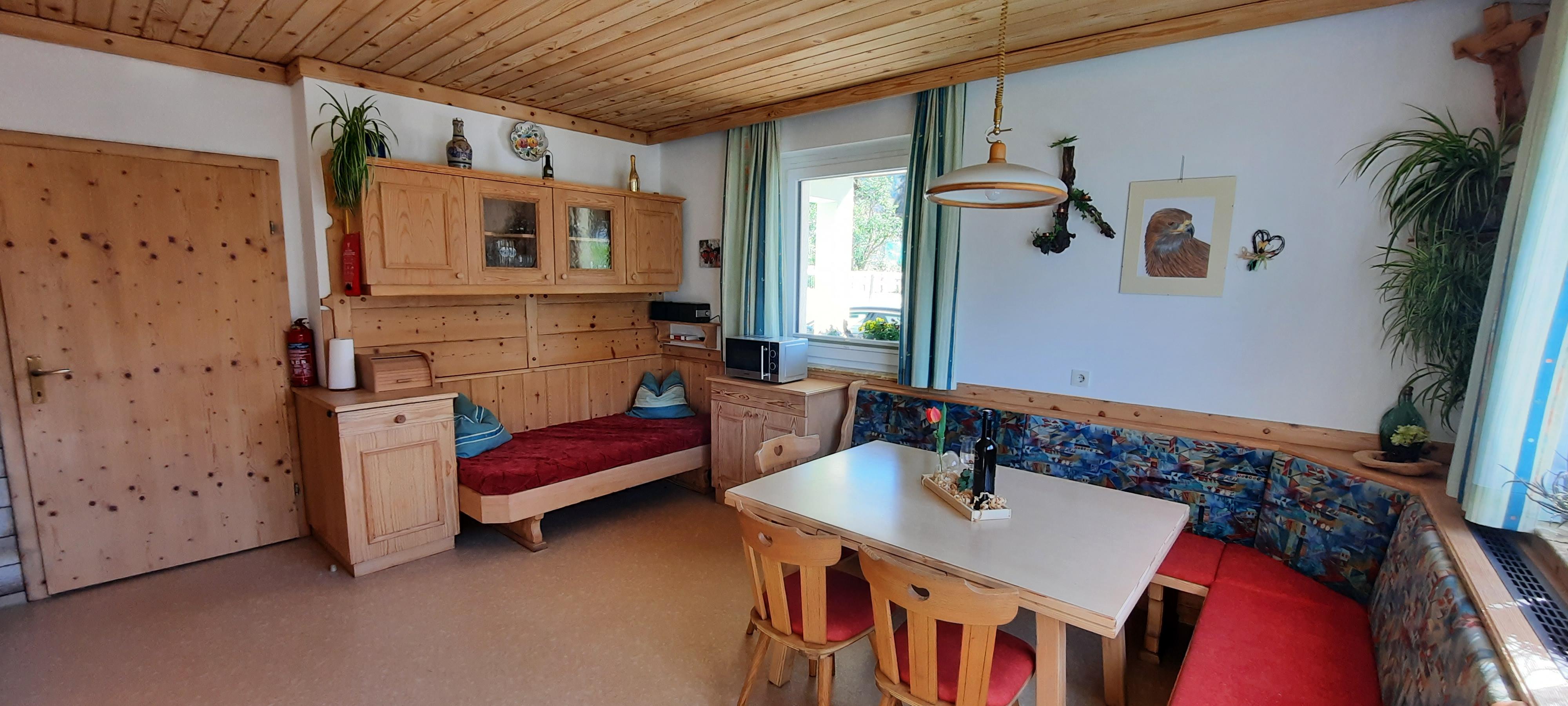 Das Haus liegt am nördlichen Stadtrand von Lienz und befindet sich inmitten einer traumhaften Bergkulisse. Die Ferienwohnung im Erdgeschoß hat eine Wohnfläche von 68 m², wurde vor kurzem größtenteils neu renoviert und bietet ideal Platz für 2 Personen. Die Wohnung besteht aus 1 Schlafzimmer mit Doppelbett, voll ausgestatteter Wohnküche, Badezimmer (Regendusche, eigener Badewanne, Lampe mit wechselnden Farben und Bluetooth Radio) und seperatem WC. Die gemütliche Tiroler Zirbenstube sowie die Terrasse laden zu erholsamen Stunden ein. Der Autostellplatz, ein absperrbarer Fahrradraum sowie das WLAN stehen kostenlos zu Ihrer Verfügung.