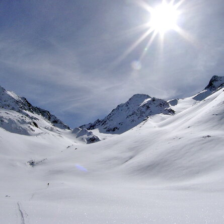 Nicht nur wegen der fantastischen Aussicht auf die zum Greifen nahen Dolomiten mit den „Drei Zinnen“ ist dieser Gipfel besonders lohnend, auch die Ausblicke in die Lienzere Dolomiten oder den Alpenhauptkamm machen ihn zum Hochbelvedere der Villgrater Sktourenberge. Die etwas steilere Abfahrt über den Grat ist bei ausreichender Schneelage sehr ansprechend. Das Pfannhorn bekommt auch von Südtiroler Seite (Toblach) häufig Besuch. Einkehrmöglichkeit nach der Tour ist die Badl-Alm.
