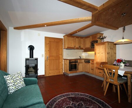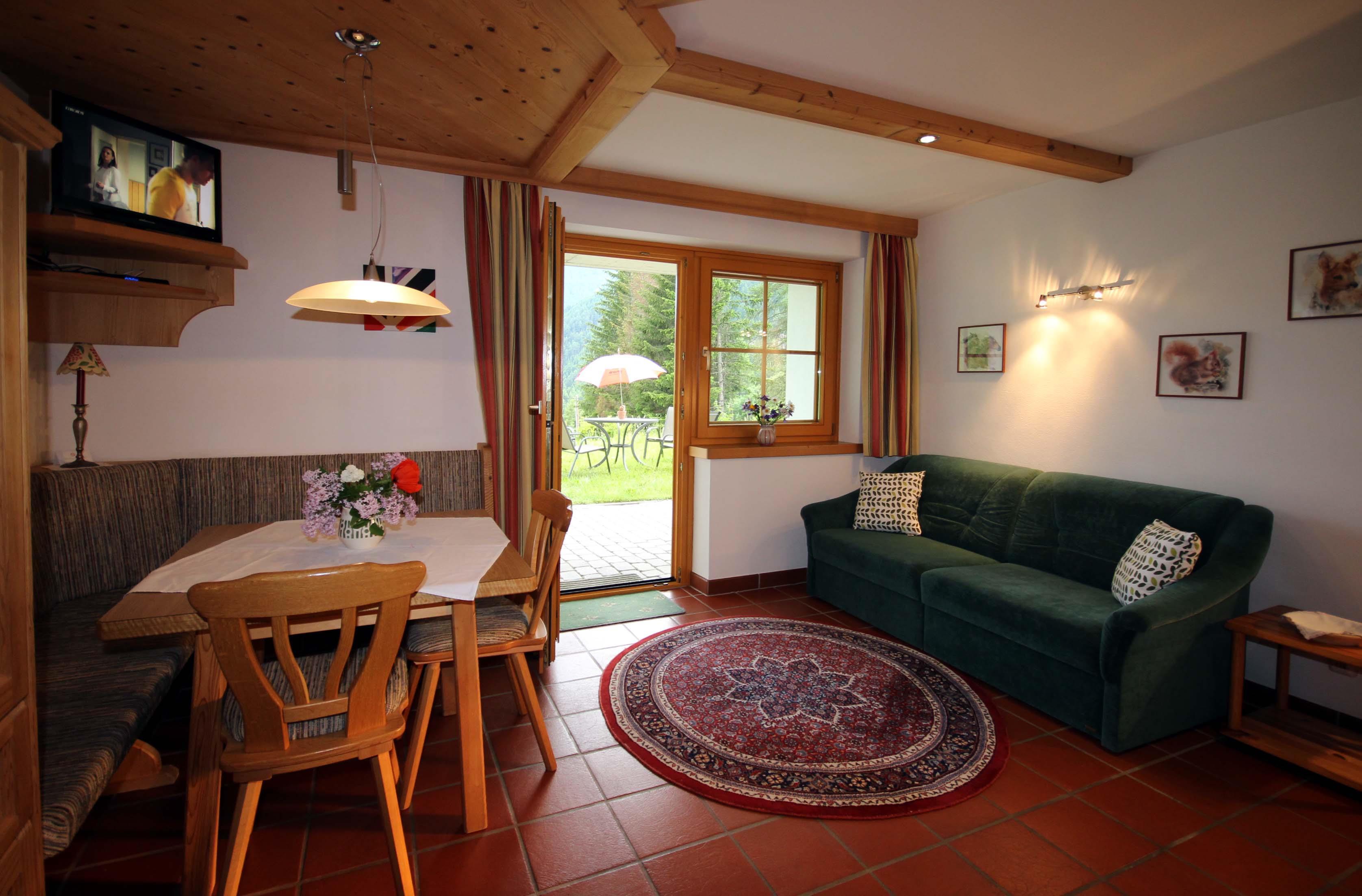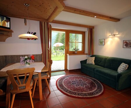 Sonnige, ruhige Waldrandlage, eigene Terrasse, vollwertige Holzeinrichtung, Kachelofen, Doppelkomfortdusche und Dampfsauna, Spülmaschine. Direkter Ausgangspunkt für Höhenwanderungen und zum Kalser Talrundweg.