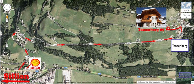 Aus Richtung Lienz kommend biegt man in Heinfels direkt nach der Shell Tankstelle rechts ab zum Ortsteil Tessenberg. Nach der Ortstafel 2x jeweils die erste Möglichkeit links bis zum letzten (westlichsten) Haus des Dorfes.