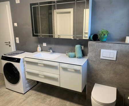 Beide sind mit einer modernen, komplett ausgestattet Küche und Sitzecke möbliert. Ein Flachbildschirm (Sat-TV), Radio, Gratis WLAN und ein Weinkühlschrank lassen Ihren Urlaub noch gemütlicher und erholsamer werden. Das WC befindet sich im Badezimmer plus einer bodengleichen Dusche, die das Bad komplimentiert. Alle Räume sind mit Fußbodenheizung verlegt. Private Parkplätze sind ausreichend vorhanden.