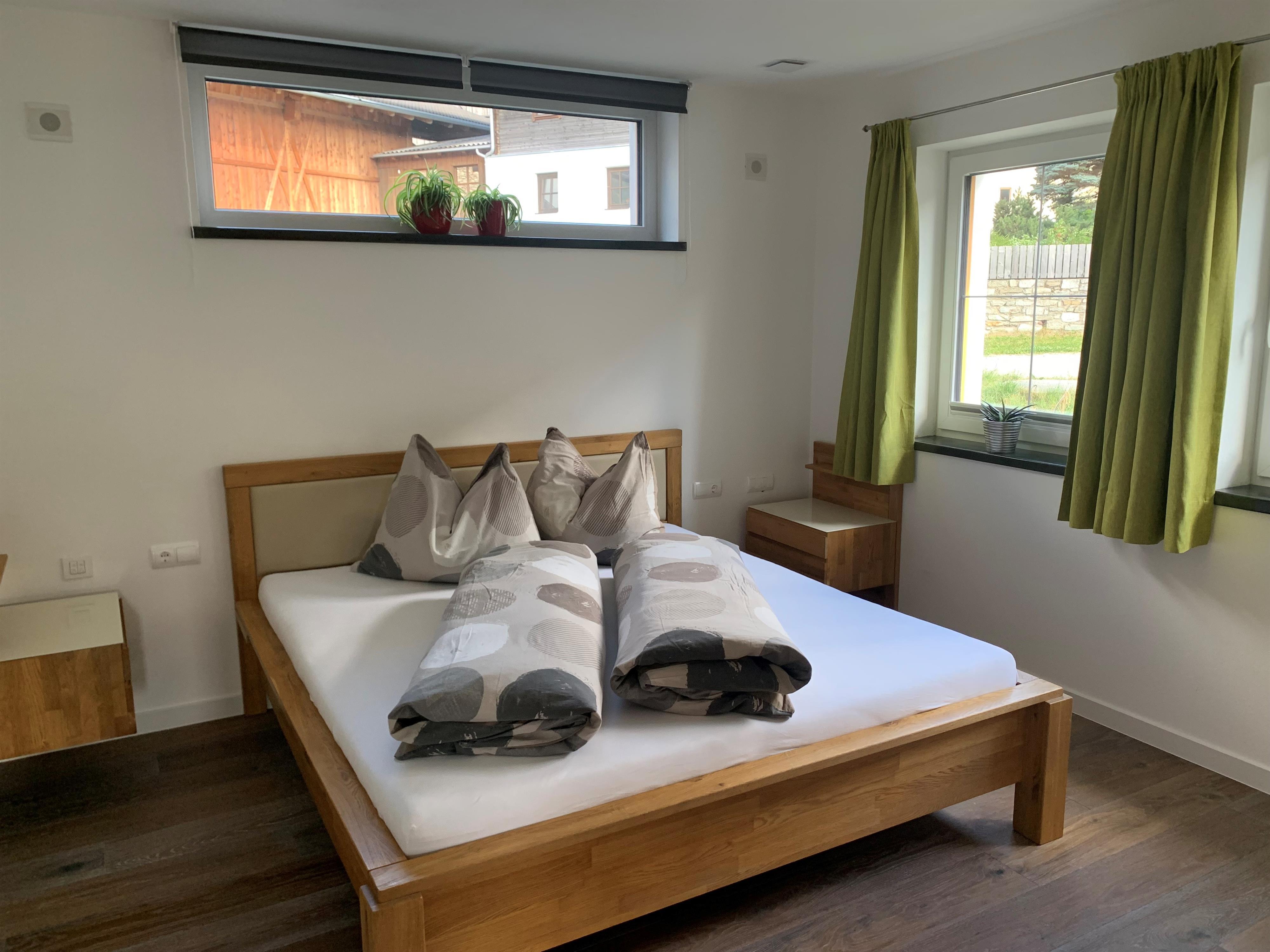 In der Wohnung "Panorama XL" mit 94 m² Wohnfläche, befinden sich zwei Schlafzimmer mit je zwei Betten. Wir bieten diese für 2–4 Erwachsene oder 2 Erwachsene mit 2–3 Kindern (1 Kind – Reisegitterbett) an. Die Raummöglichkeiten gestalten sich äußerst großflächig mit einer beträchtlichen Lichteinstrahlung. Darüber hinaus ist das Bad mit einer Waschmaschine ausgestattet und der Eingang verläuft ebenerdig. Das Appartement "Panorama M" mit 51 m² Fläche, ist mit einem Schlafzimmer eingerichtet für 2 Erwachsene oder 2 Erwachsene mit 1–2 Kindern (1 Kind – Reisegitterbett).