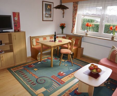 In sonniger Lage mit herrlichem Ausblick auf die Bergwelt, 700 m vom Ort und ca. 1 km von Gondel entfernt. Schwimmbad, Tennis- und Reithalle ganz in der Nähe. WLAN-Internetanschluß. Bilder unserer Wohnungen (siehe unten)unter weitere Infos.