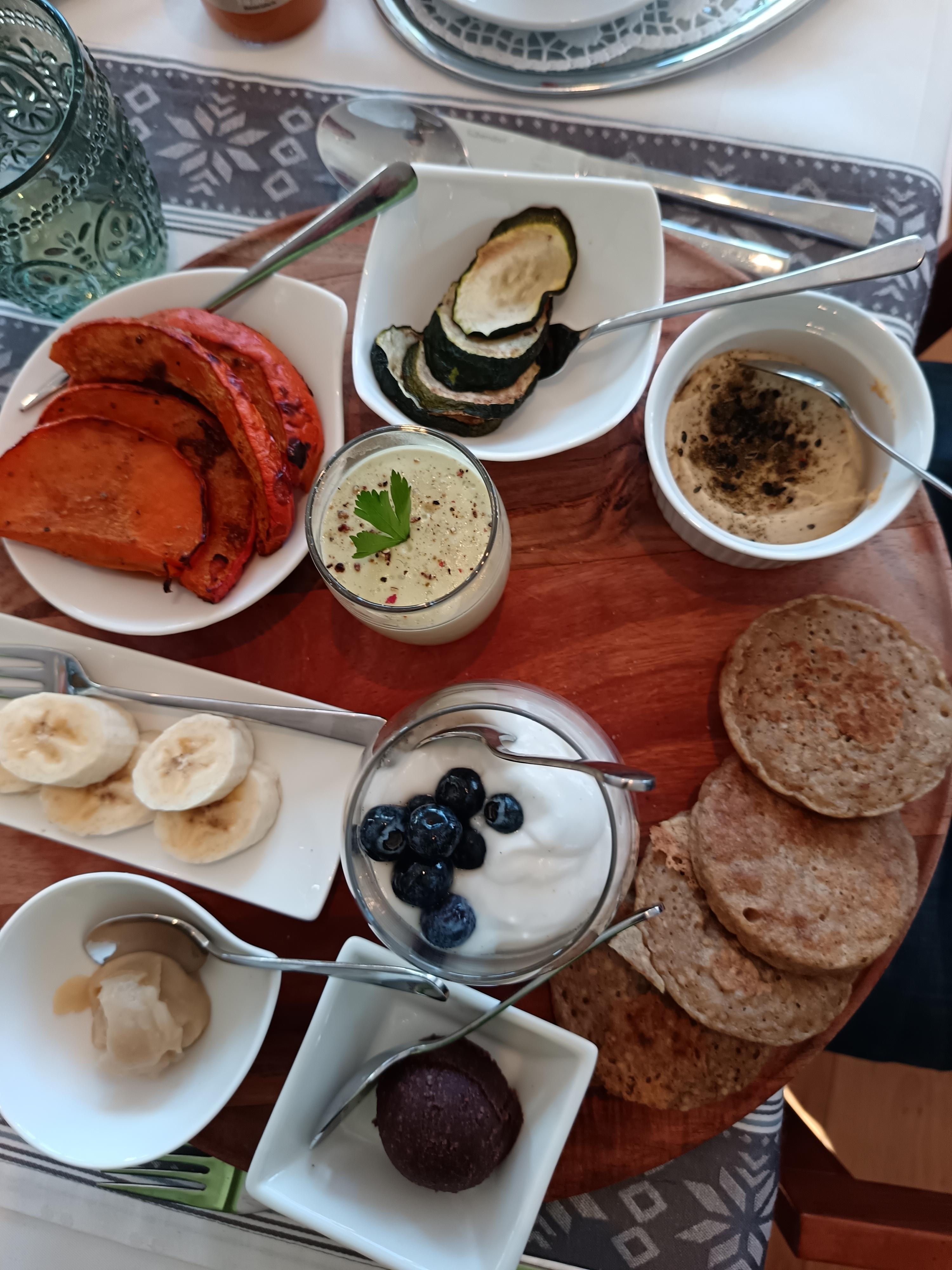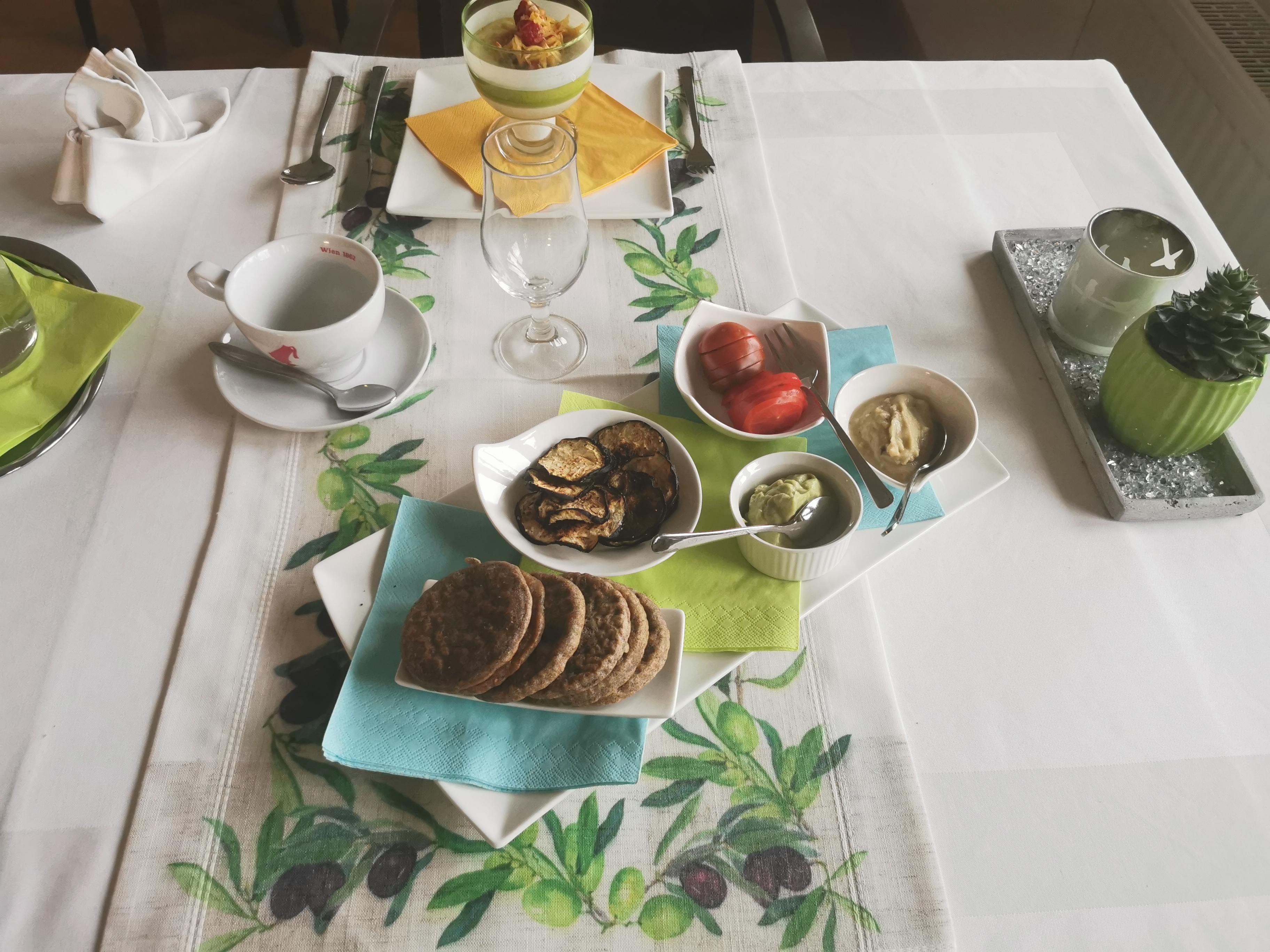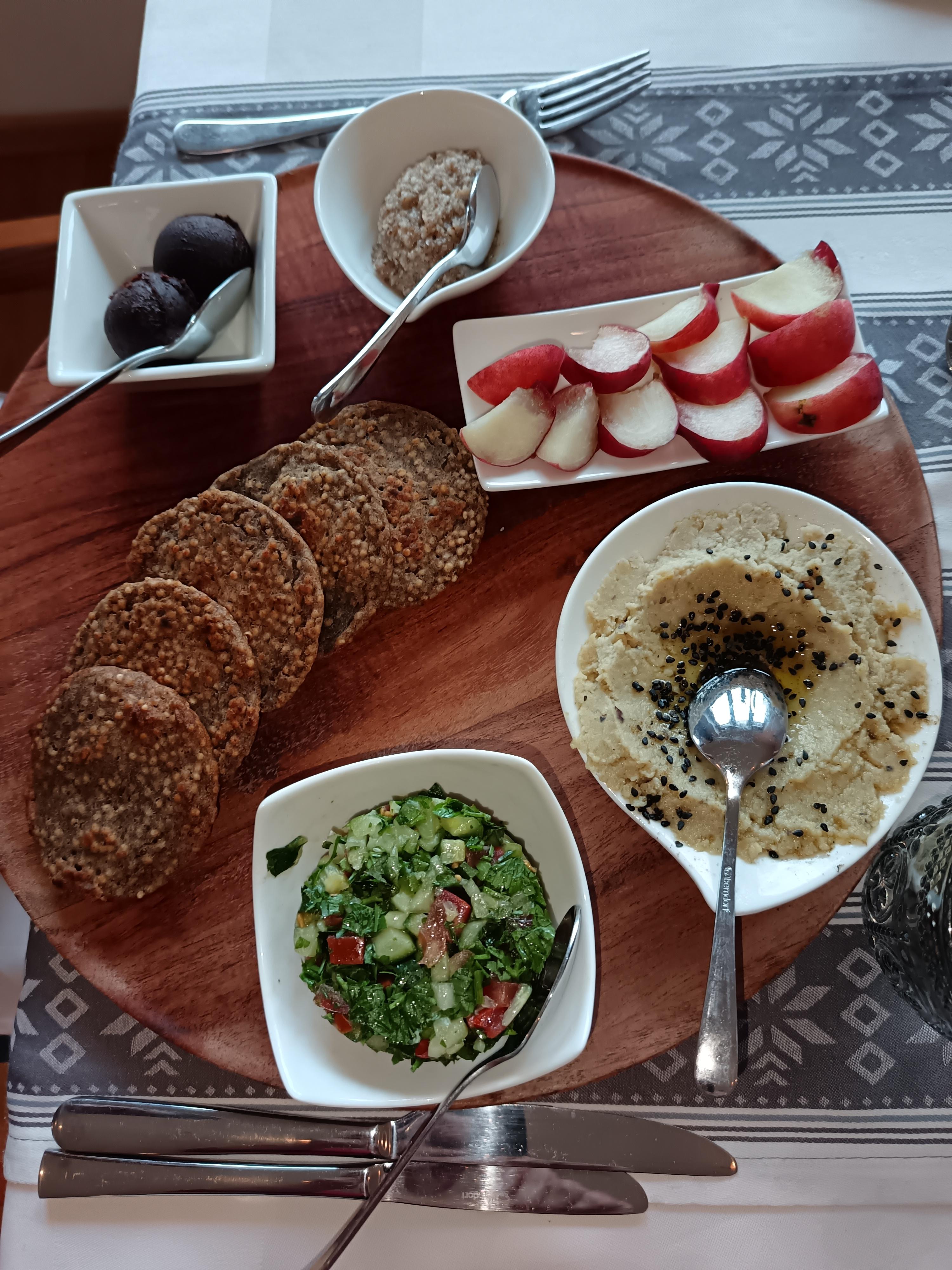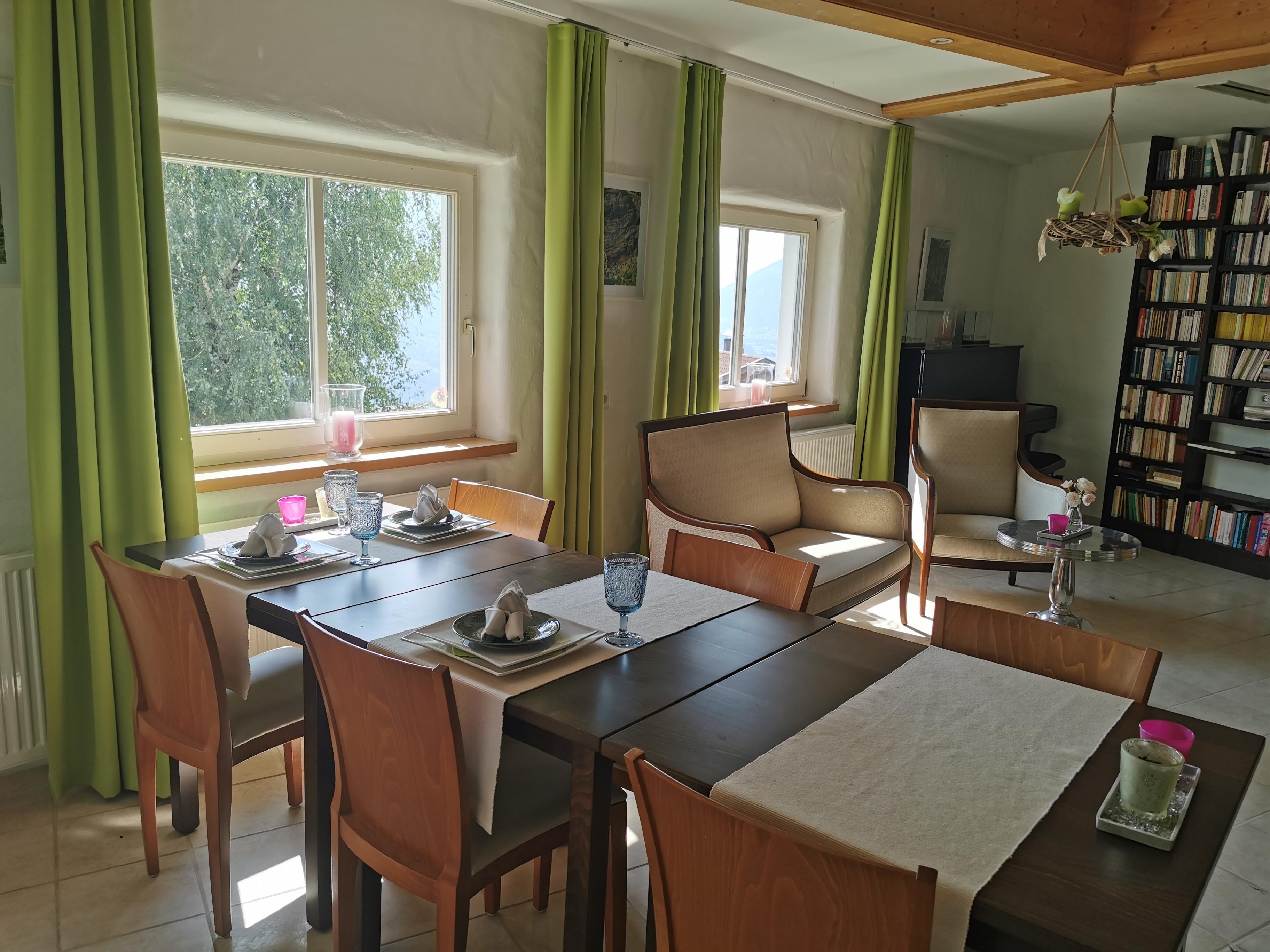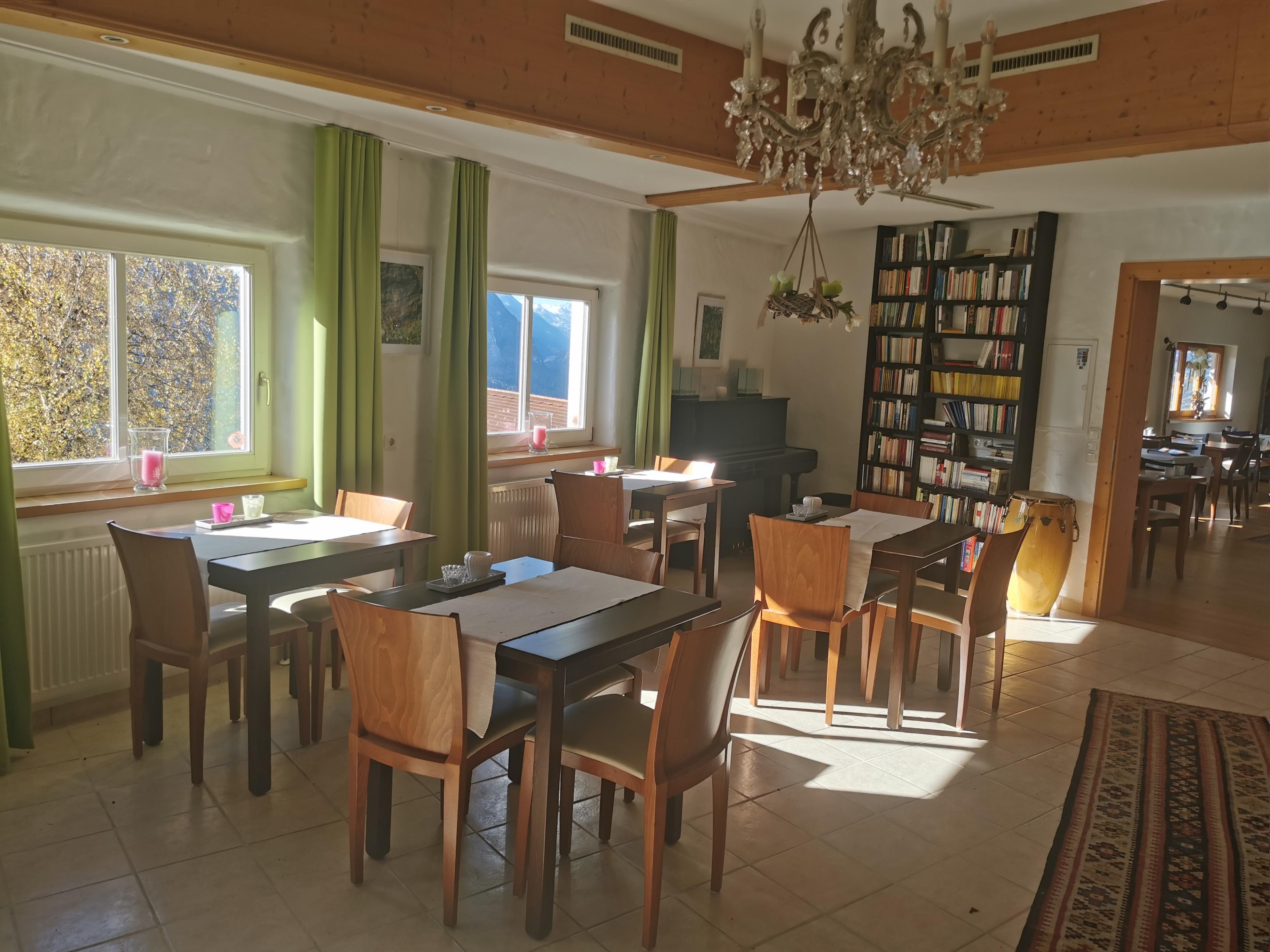 Sie können auch mit täglich wechselnder glutenfreier veganer Frühstückspension buchen. Das 2-Gang Frühstück nach TCM gibt Ihnen Energie für Wanderungen und Touren. Tagsüber können Sie aus einer kleinen Karte wählen, ein Genuss für Augen und Gaumen.