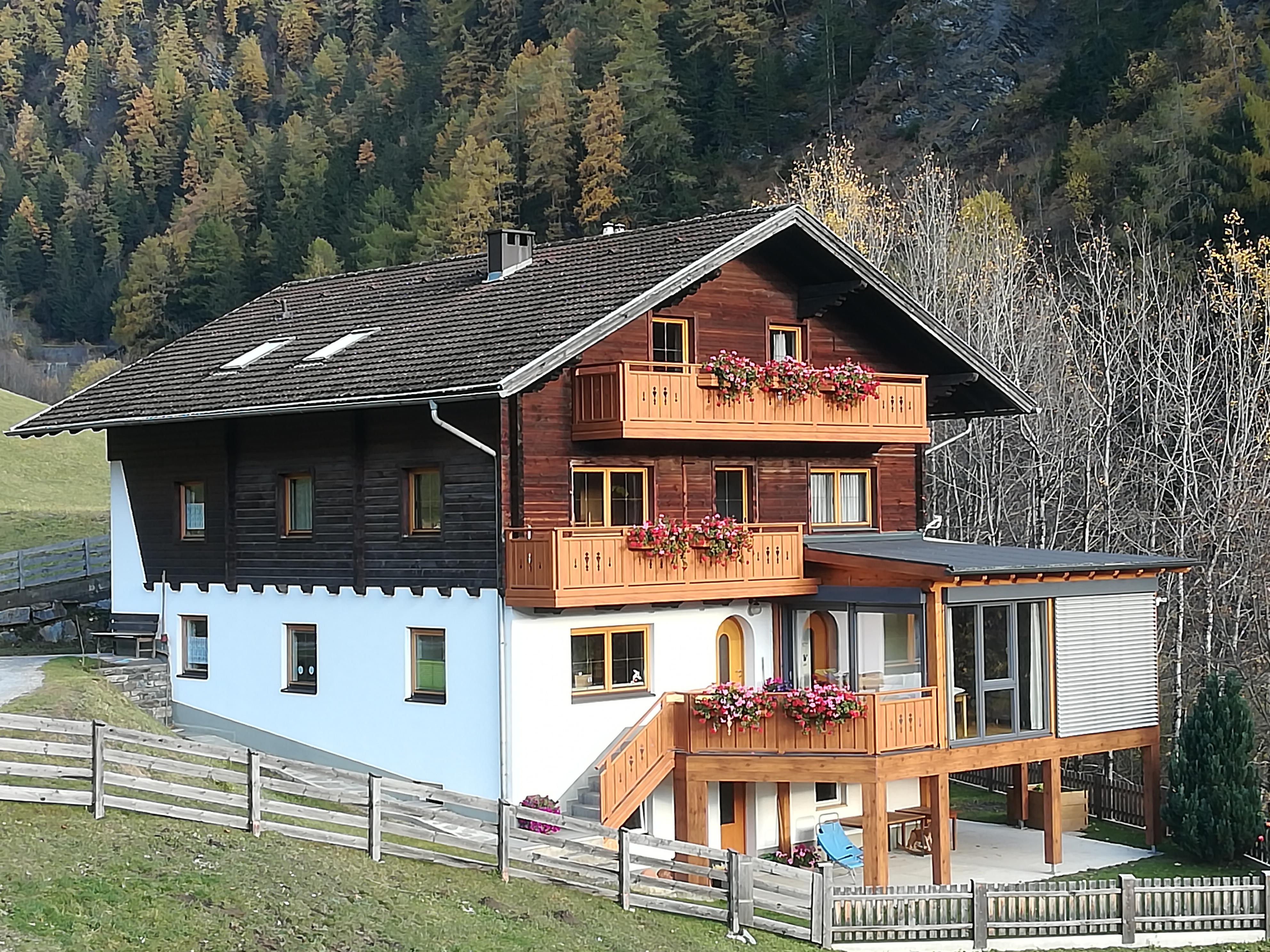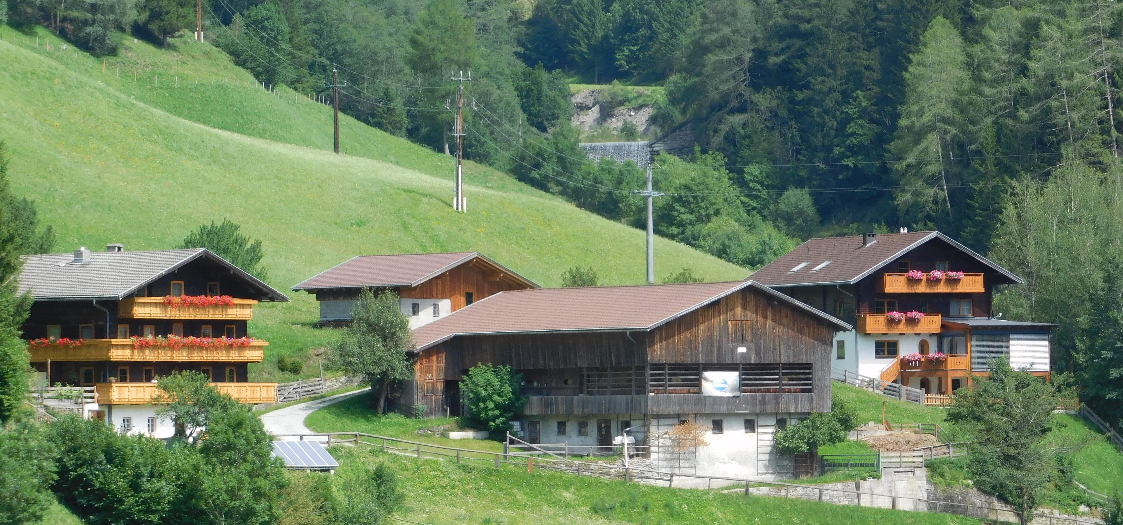 Unser kleiner Bergbauernhof, das alte Bauernhaus mit dem sonnengebräunten Holz und das Ferienhaus, umgeben von Wiesen und Wald, befinden sich in ortsnaher und verkehrsfreier Lage auf der Sonnenseite von Matrei.