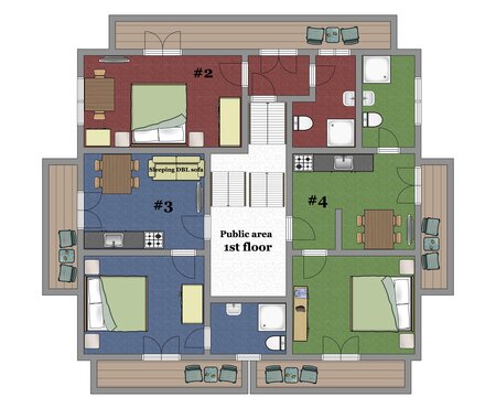 Das Haus wird nur als Ganzes an Gruppen von bis zu 19 Personen vermietet. Sie wohnen hier ganz privat ohne weitere Gäste oder Eigentümer im Haus. Der Zugang zum Haus erfolgt über einen personalisierten Türcode. Vor dem Haus liegen vier kostenfreie Parkplätze.