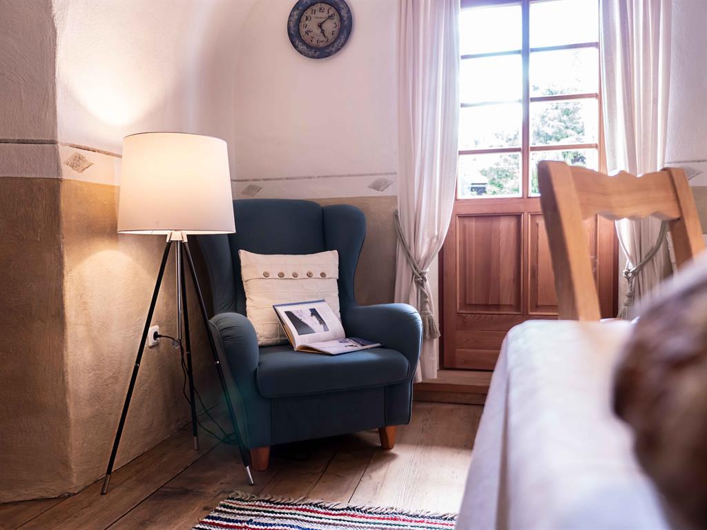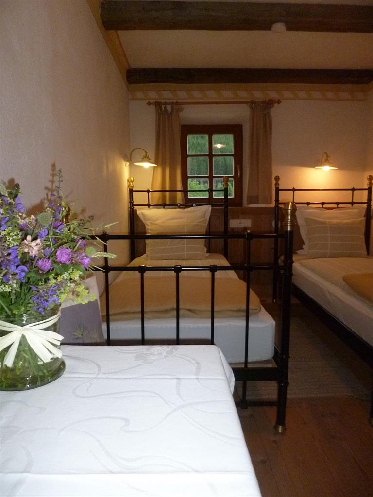 Mehr als zwei Jahrhunderte lang war der „Strickenmacher-Hof“ die Heimstätte einer Großfamilie, die aus mindesten zwölf Personen bestand. Um die große Zahl an hungrigen Mündern täglich satt zu bekommen, wurden Gemüse, Kartoffeln und Getreide selbst angebaut. Einmal im Monat wurde Brot auf Vorrat gebacken. In unserem Appartement „Brotkammer“ befinden sich noch Teile eines Brotrahmens, in dem dieses dann gelagert wurde. Sein Duft begleitet Sie noch heute in diesem gemütlichen Appartement - im Luxus des Einfachen!