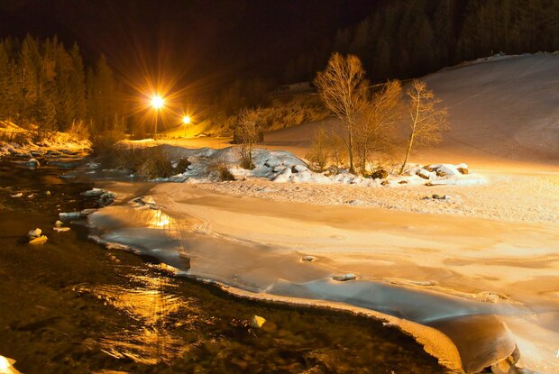 Beleuchtete Loipe für klassischen Stil und Skating