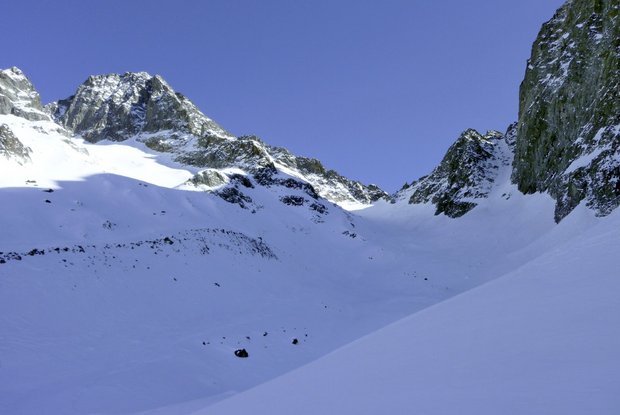 Die Skitour zum Kalser Törl zählt zu den anspruchsvollen in der Schobergruppe und darf nur bei absolut sicheren Verhältnissen begangen werden. Die im Hochwinter meist unnahbar wirkenden Flanken fallen in die Kategorie Extremhänge, das heißt so viel wie selten befahren, über 35 Grad steil und schattseitig. Im Frühjahr allerdings, wenn sich das Schneepaket gesetzt hat, ist diese Tour ein wahres Schmankerl abseits des Trubels. Ausgangspunkt ist die Fraktion Lesach, ca. 1, 5 km vor Kals. Die Straße leitet uns zwischen urigen Häusern zum ausgewiesenen Parkplatz bei einer Holzschupfe in Oberlesach (1.415 m). Die Zufahrt zum sperrenden Schranken ist mittlerweile nicht mehr gestattet und es gilt über die bergseitigen Wiesen zum Forstweg abzukürzen. Die breite Schotterstraße bringt uns nun immer taleinwärts zur netten Lesachalm Hütte (1.818 m, 1,5 Stunden), die wir in einer fallenden Querung erreichen. 60 Höhenmeter Gegenanstieg beim Rückweg sind hier einzuplanen. Wir folgen nun der Skispur links des Bachlaufs in das mit seinen imposanten Berggestalten abenteuerlich wirkende Lesachtal. Bei ca. 2.000 m streben wir aus der Talsohle zwischen lichten Lärchen Richtung Südosten zu den steilen und zerfurchten Moränenflanken unterhalb des Kalser Törls. Hier entscheiden die Verhältnisse, wo genau angestiegen wird. Über ansprechendes Spitzkehrengelände (NW, 30°) halten wir uns fern von eingeblasenen Rinnen und gewinnen bei ca. 2.400 m flacheres Terrain. Hier beginnt ein kleines Hochtal und durch die archaisch anmutende Landschaft steigen wir zur engen Scharte zwischen Glödis und Ralfkopf. Der Schlusshang (NW, 35°) ist oft trügerisch eingeblasen und verlangt lawinenkundliches Beurteilungsvermögen. In etlichen Spitzkehren gelangen wir mühselig in eine kurze, steile Rinne, welche uns je nach Verhältnissen, Ski tragend in das Törl bringt (Steinmann, 4 Stunden vom Tal). Abfahrt entlang der Aufstiegsspur.
