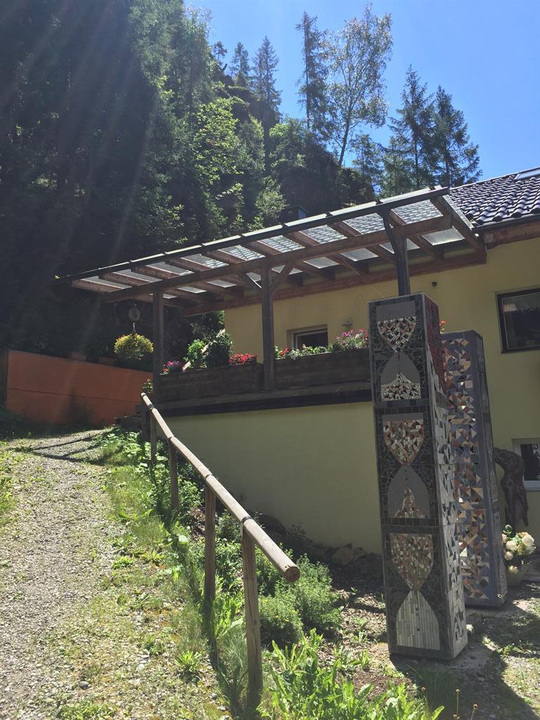 Das Haus liegt am Dorfeingang; die monumentale Skulptur "Ikarus" kann nicht übersehen werden. Zwischen Bach und Wald liegt das verträumte Haus und unsere Gäste fühlen sich in der ruhigen Umgebung sehr wohl.